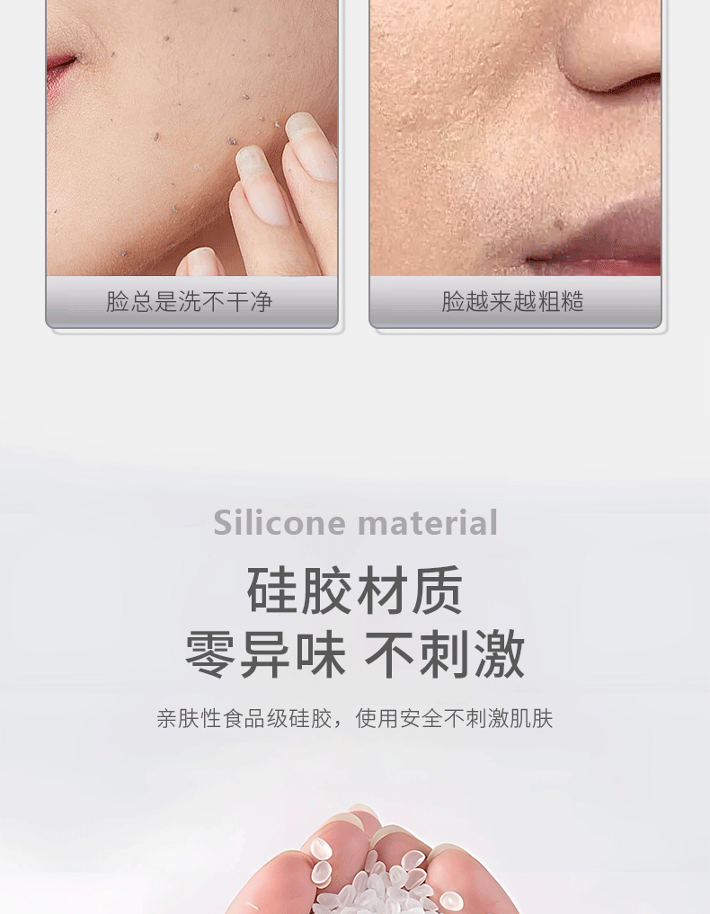 Safe & Gentle Material: Made of well-selected silicone material, the face scrubber is soft with moderate hardness, making it skin-friendly and safe to use.